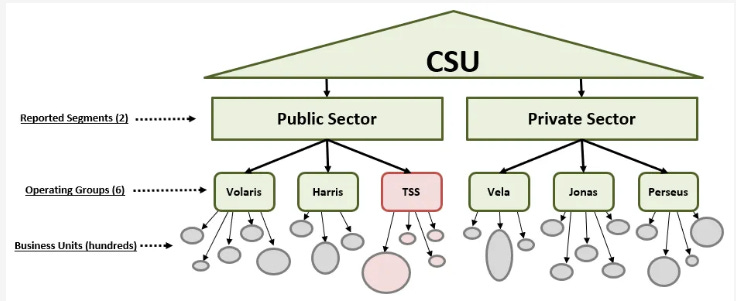 Each OG is composed of several verticals, each vertical has at least one Business Unit (BU), and each BU can consist of one or several companies. In a 2015 letter, Leonard mentioned CSI had 182 BUs serving more than 75 verticals. Since CSI adds 3-5 verticals each year, the number of verticals is perhaps ~100-120 by now.