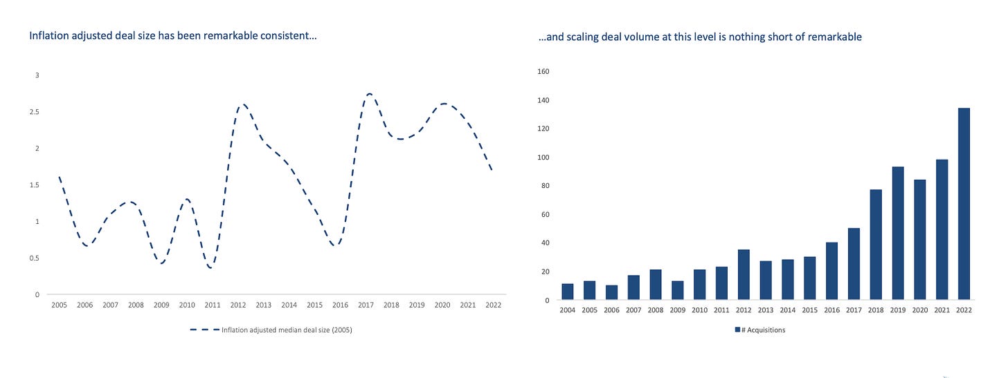 Scaling M&A is very difficult when targeting a broad TAM (platforms, accumulators).