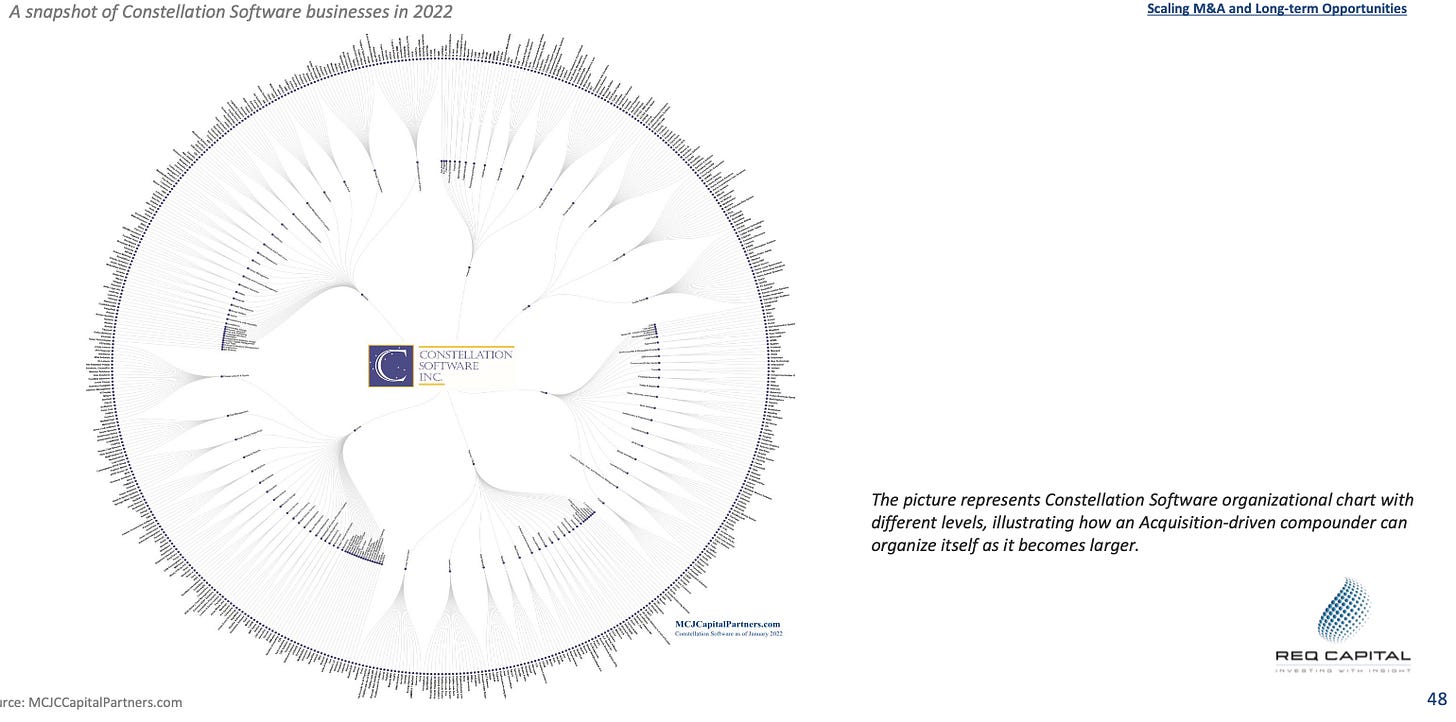 Constellation acquires and plans to be the perpetual owner of hundreds of small to medium-sized vertical market software businesses. Like many great acquisition-driven compounders, the essence of Constellation's management style is decentralization.